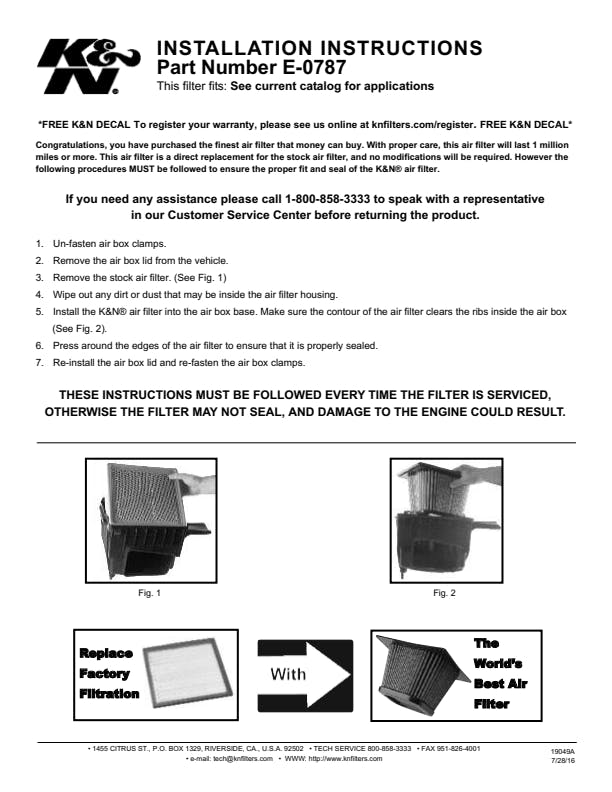 K&N's replacement High-Flow Air Filters are designed to increase horsepower while providing exceptional engine protection, and are covered by K&N's No-Hassle Lifetime Limited Warranty.