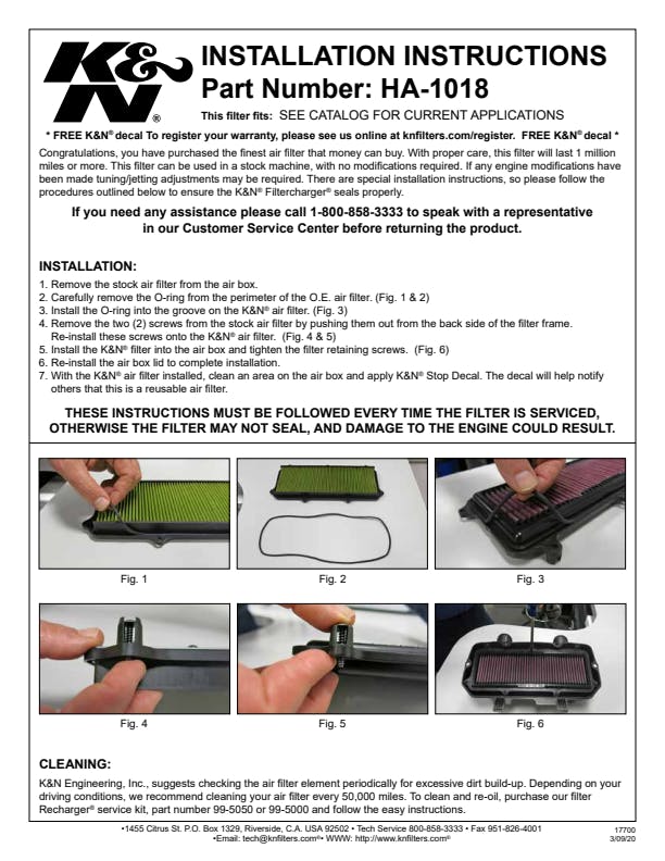 K&N's high-flow air filters are available as a replacement for your stock motorcycle air filter element. They are custom engineered to fit your specific application and are designed to provide low restriction and increased performance, while providing excellent engine protection for your motorcycle.