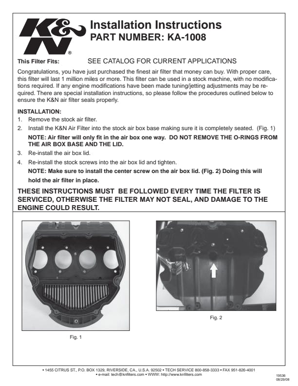 K&N's high-flow air filters are available as a replacement for your stock motorcycle air filter element. They are custom engineered to fit your specific application and are designed to provide low restriction and increased performance.