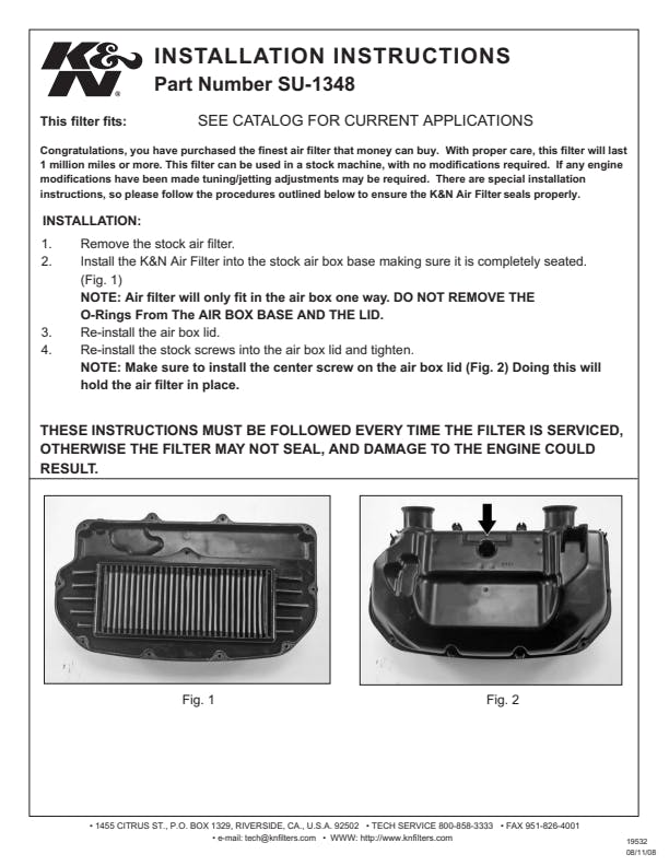 K&N's high-flow air filters are available as a replacement for your stock motorcycle air filter element. They are custom engineered to fit your specific application and are designed to provide low restriction and increased performance, while providing excellent engine protection for your motorcycle.
