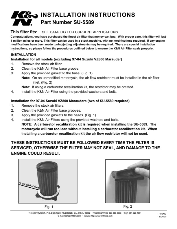 K&N's high-flow air filters are available as a replacement for your stock motorcycle air filter element. They are custom engineered to fit your specific application and are designed to provide low restriction and increased performance, while providing excellent engine protection for your motorcycle.
