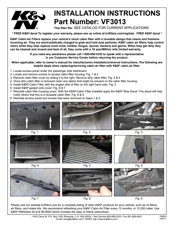 K&N’s line of washable replacement cabin air filters are designed to filter your incoming air using state-of-the-art filtration technology - protecting your vehicle’s occupants, interior, and HVAC system from pollutants and unpleasant odors. Engineered to be washable, reusable, and durable, this cabin filter is designed to last for the entire lifespan of your vehicle!