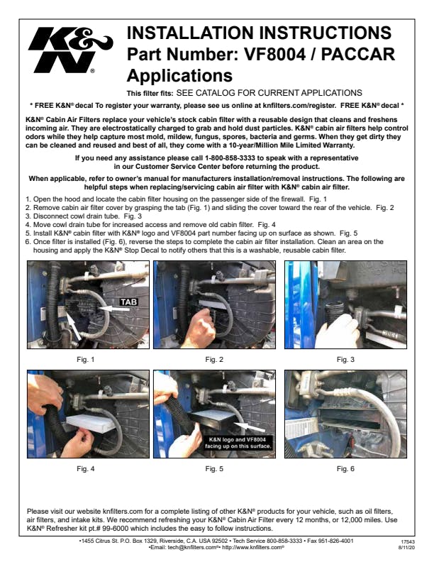 K&N Heavy Duty Cabin Air Filters replace your rig's stock cabin filter with a durable and reusable design that cleans and freshens incoming air. These robust cabin air filters help capture most mold, mildew, fungus, spores, bacteria, and germs controlling odors and contaminants inside the cabin during those long hauls. They are electrostatically charged to grab and hold dust particles. When they get dirty no need to replace, K&N's cabin air filters are incredibly easy to clean and reuse and best of all, they come with a 10 year / Million Mile limited warranty.