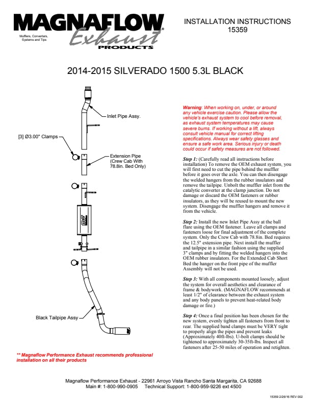 The Street Series Black Performance Exhaust system delivers dyno proven power with a comfortable interior sound and performance exterior sound. Features Black coated tips. MagnaFlow Performance Exhaust System Kit 15359 is made of durable stainless steel and built using CNC precision robotic manufacturing techniques, all backed by MagnaFlow’s limited lifetime construction warranty and 1 year finish warranty.