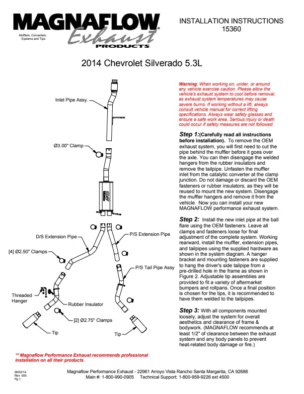 The Street Series Black Performance Exhaust system delivers dyno proven power with a comfortable interior sound and performance exterior sound. Features Black coated tips. MagnaFlow Performance Exhaust System Kit 15360 is made of durable stainless steel and built using CNC precision robotic manufacturing techniques, all backed by MagnaFlow’s limited lifetime construction warranty and 1 year finish warranty.
