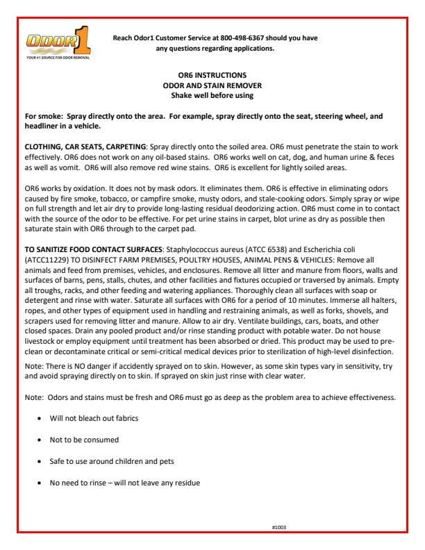 Odor 1 736623 OR6 CLO2 Odor and Stain Removal- Seal of approval from CRI