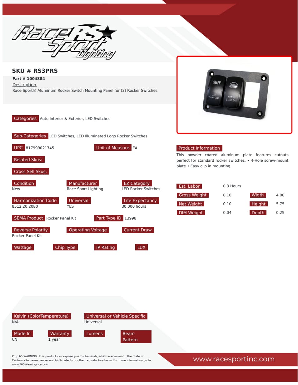 This powder coated aluminum plate features cutouts perfect for standard rocker switches.? 4-Hole screw-mount plate? Easy clip in mounting