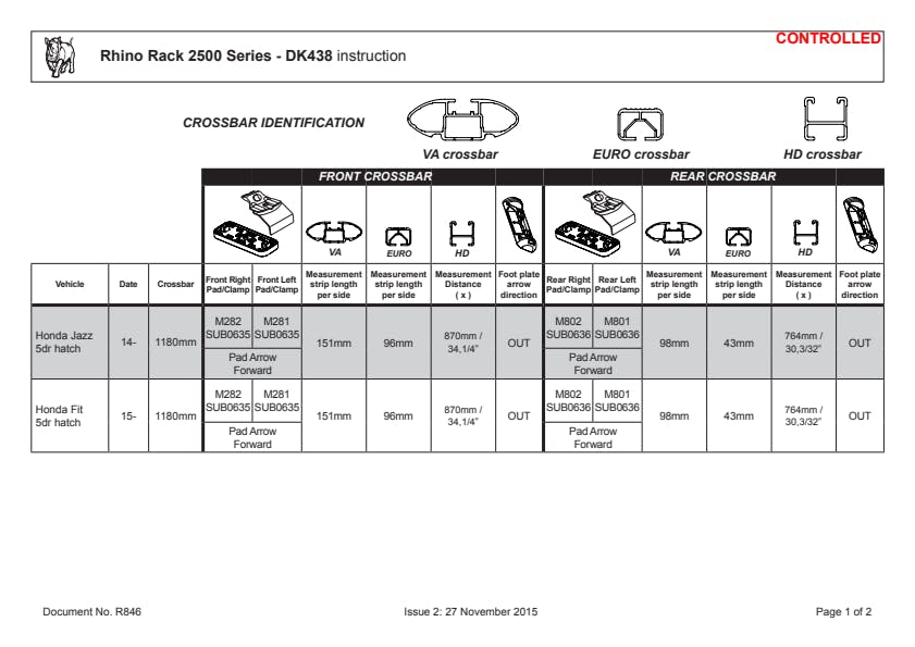 Rhino-Rack's DK kits are used in all the 2500 roof rack systems. The kit consists of the pads and clamps which attach to your vehicle's roof. The kit includes 4 pads and 4 clamps.