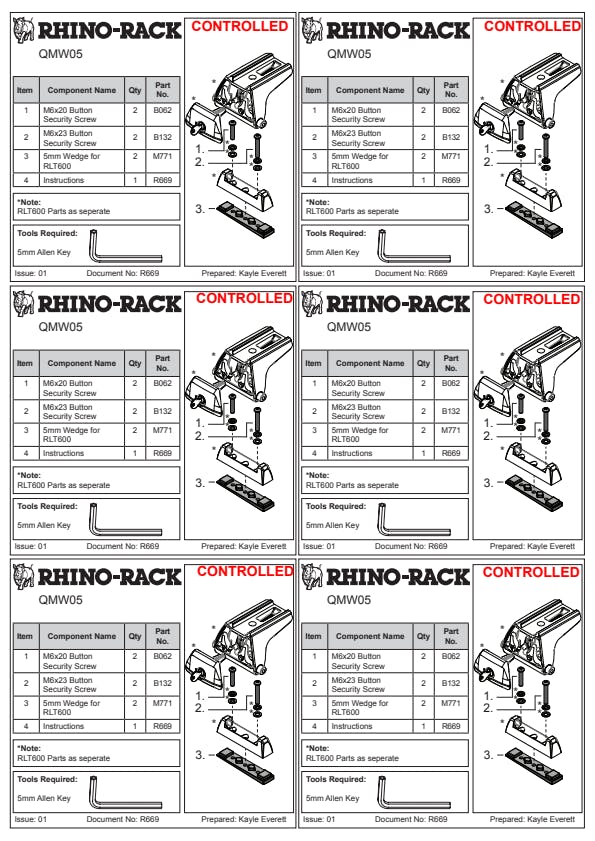 The 5mm Quick Mount™ Base Wedge is designed to create a level bar when fitting an RLT600 Quick Mount™ Leg to a track position that is curved or angled.