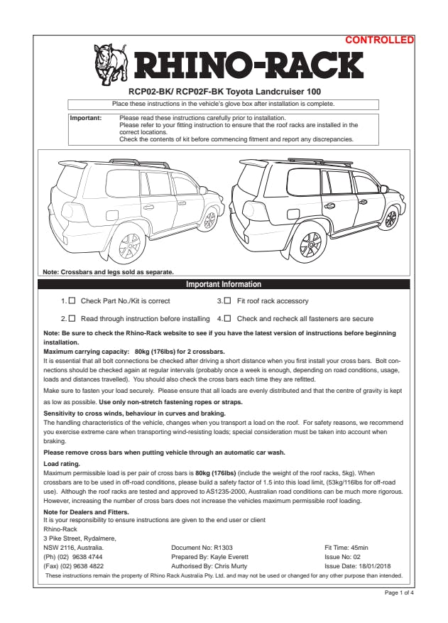 - For Use w/Rhino-Rack Range of RC/RV Roof Rack Systems