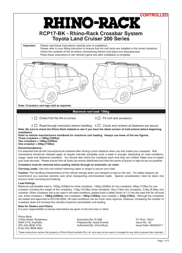 - For Use w/Rhino-Rack Range of RC/RV Roof Rack Systems