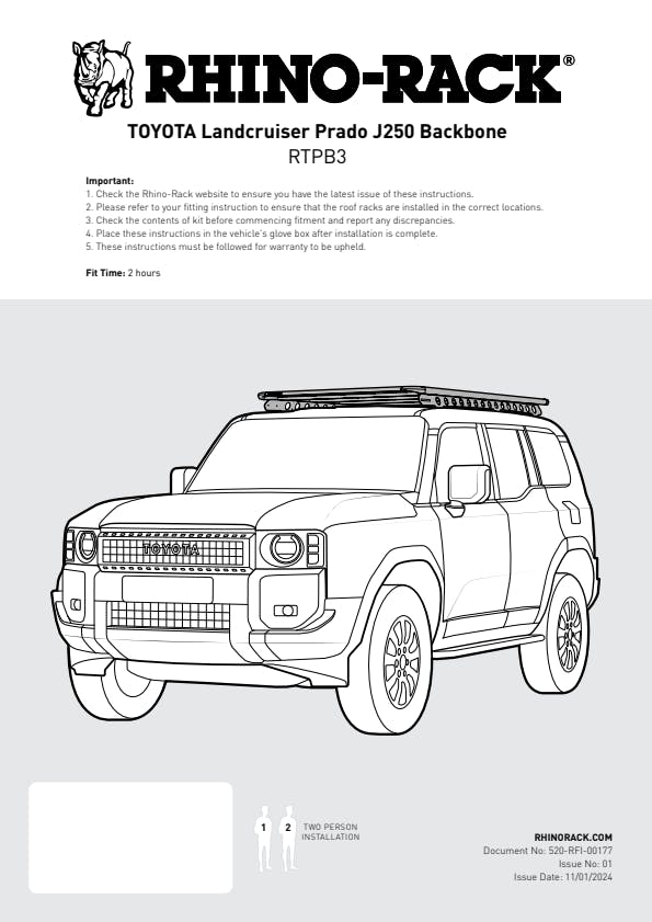 Rhino-Rack RTPB3 Toyota LandCruiser 250 and Lexus GX550 - Backbone Mounting System