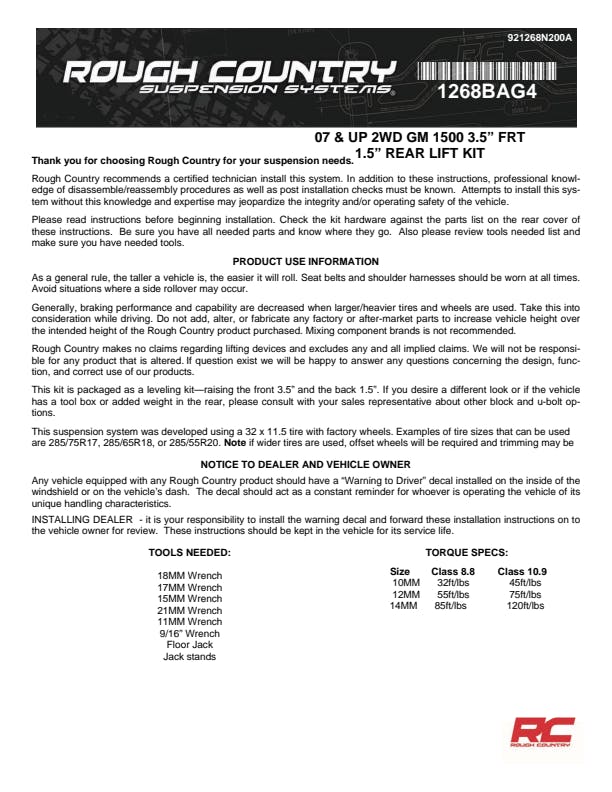 Level Up Your Ride: Take your GM truck to new heights with Rough Country's redesigned 3.5-Inch Suspension Lift Kit now packed with performance-driven upgrades to elevate your off-road experience. Engineered for both strength and style, this kit delivers aggressive stance, superior clearance, and enhanced ride quality straight out of the box. Bolt-On Brilliance: Enjoy a hassle-free installation with a simple bolt-on design that gets you back on the trail faster no strut disassembly required. Plus, the fully reversible setup means you can return to stock height anytime with zero permanent modifications. Balanced Stance, Bold Capability: Eliminate factory rake with front-to-rear leveling that gives your truck a clean, aggressive look while improving ground clearance to tackle rugged terrain with ease. Custom-Tuned Shock Options: Choose your ride experience: opt for our acclaimed N3 nitrogen-charged shocks for comfortable daily driving and solid all-terrain performance, or upgrade to M1 Monotube shocks for tighter handling and enhanced off-road control.