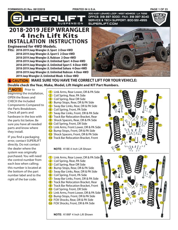 Established in 1975, Superlift remains a pioneer in the industry, and is one of the few suspension companies operated by true truck and off-road enthusiasts. We are passionate about trucks, wheeling and an outdoor lifestyle that go hand-in-hand. We can talk the talk because we walk the walk.This question.... ''What's best for the customer?''... is always at the top of our list in everything we do, from product planning and design to customer service. This simple guiding principal has served us well for decades, and will continue to guide us into the future.We are proud to provide the truck, Jeep and SUV owner products that perform better than advertised. We understand that most people spend the majority of their windshield time on-road, and our designs reflect this. You will be 100% satisfied with our products on-road or off - we guarantee it! Determining what product is right for your vehicle and lifestyle can be a complicated task, especially with so many companies and options to choose from. We urge you to carefully research your purchase. Most lift kits represent a considerable investment, and you will literally live with your choice for years. Talk to fellow off-roaders, and your local automotive specialty shop before making a purchase. We love to talk shop, and we encourage you to give our tech staff a call. Bottom line... if you do your homework, you'll discover that we've done ours.