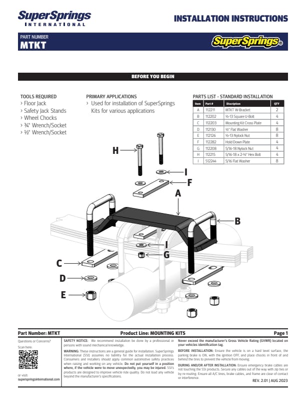 Mounting kits and poly spring pad mounting blocks are used as a fulcrum centered underneath SuperSprings. They sit on top of the factory spring pack assembly underneath the SuperSprings. They act to elevate, insulate, and anchor the SuperSprings to the factory spring assembly.