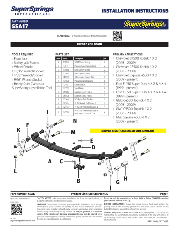 SuperSprings for Ford F-450/F-550, Chevrolet/GMC Kodiak/TopKick 4500/5500.