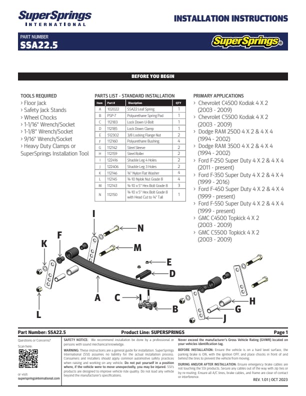 SuperSprings for RAM 2500/3500, Ford F/E Series, Chevrolet/GMC Silverado/Sierra 3500, Nissan UD.