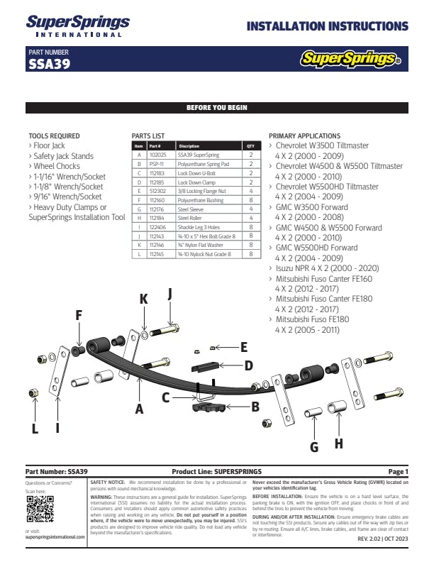 SuperSprings for Isuzu NPR, Mitsubishi Fuso FE-160/FE-180, GMC W3500/4500/5500.