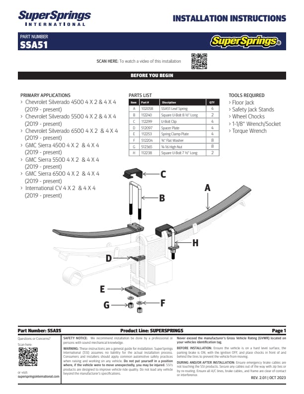 SuperSprings for Chevrolet 4500 / 5500 / 6500, International CV.
