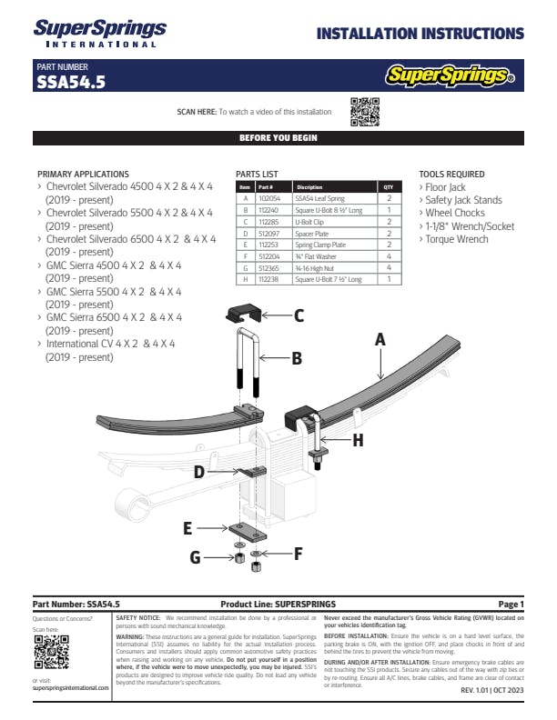 SuperSprings for Chevrolet 4500 / 5500 / 6500, International CV.