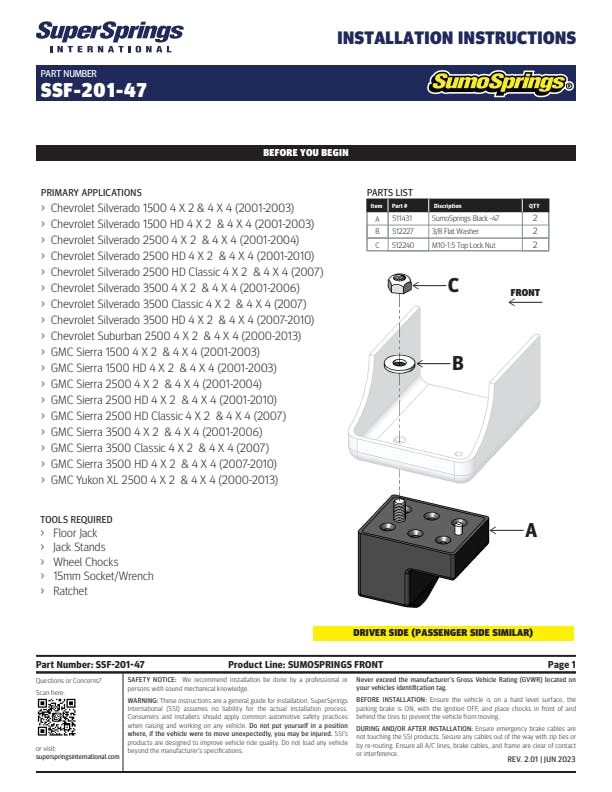 SumoSprings Front for Chevrolet/GMC Silverado/Sierra/Suburban/Tahoe/Yukon 2500/3500, Silverado/Sierra 1500.