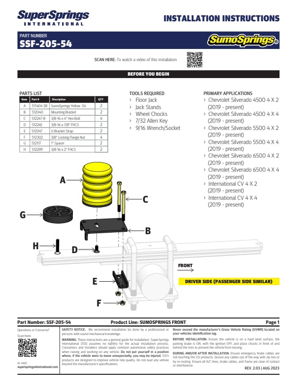 SumoSprings Front for Chevrolet 4500 / 5500 / 6500, International CV.