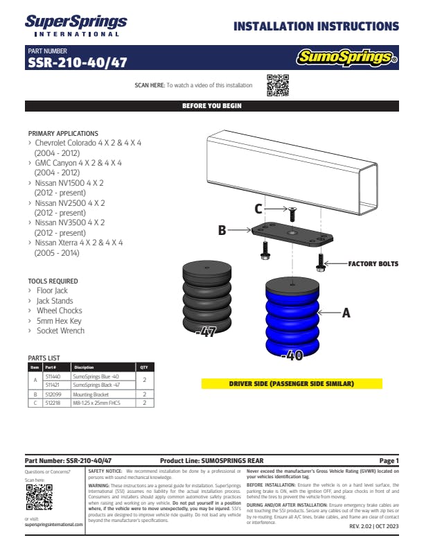 SumoSprings Rear for Chevrolet Colorado, GMC Canyon, Nissan NV1500/NV2500/NV3500, Nissan Xterra.