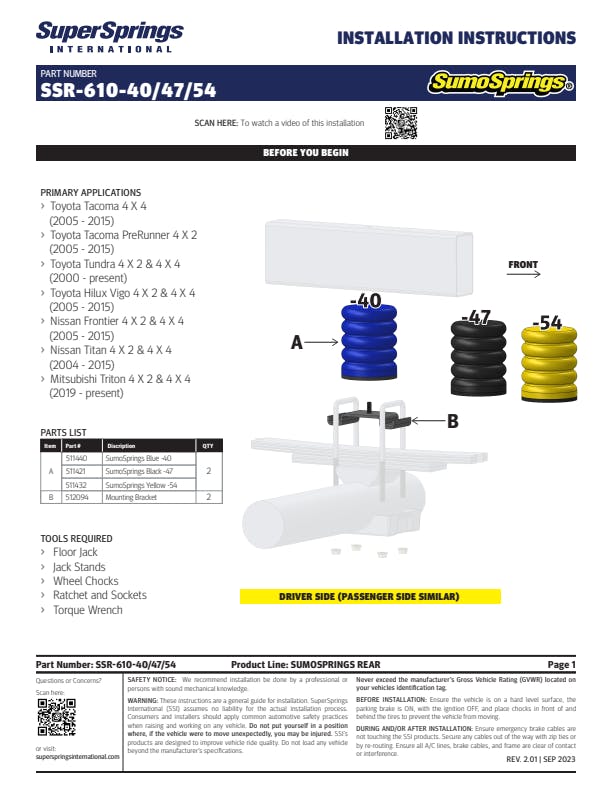 SumoSprings Rear for Toyota Tundra, Toyota Tacoma, Nissan Frontier, Nissan Titan.