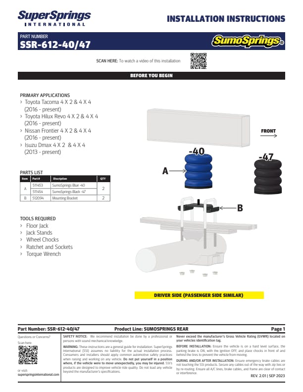 SumoSprings Rear for Toyota Tacoma, Nissan Frontier.