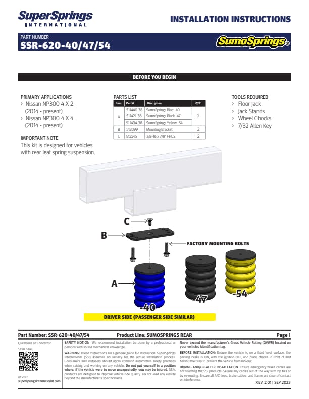 SumoSprings Rear for Nissan NP300 with rear leaf springs.