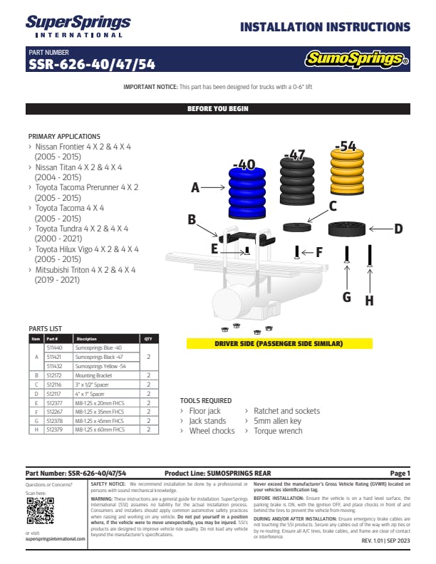 SumoSprings® are a patented suspension product designed to enhance load carrying ability, stabilize sway, and improve overall driver control and ride comfort. They are maintenance free, do not leak air, and do not require airlines or compressors. SumoSprings® are manufactured in a variety of heights, diameters and densities to support multiple front and rear applications. They are manufactured from proprietary closed micro-cellular urethane providing a smooth and progressive spring rate with superior damping properties. Every SumoSpring is handmade with care, making each one unique with its own natural characteristics, such as slight color variations and surface bubbles—proof of the craftsmanship that goes into every piece.