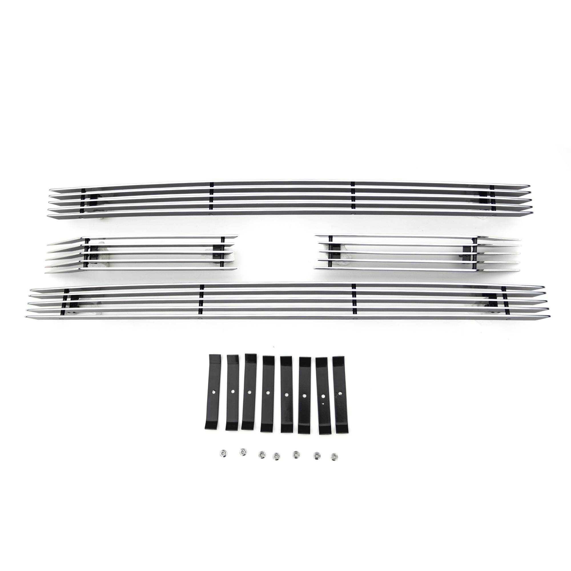 Billet Series Grille; Horizontal; Aluminum; Polished; 4 Pc; Overlay;