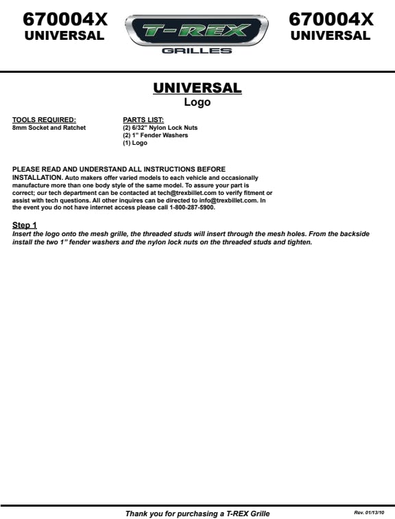 T-Rex Grilles 6700040 Emblem Universal, Polished, Stainless Steel, 1 Pc, Bolt-On