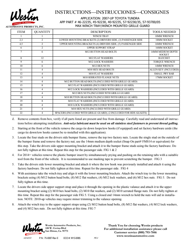 Westin 46-22235 MAX Winch Tray fits 07-21 Tundra |