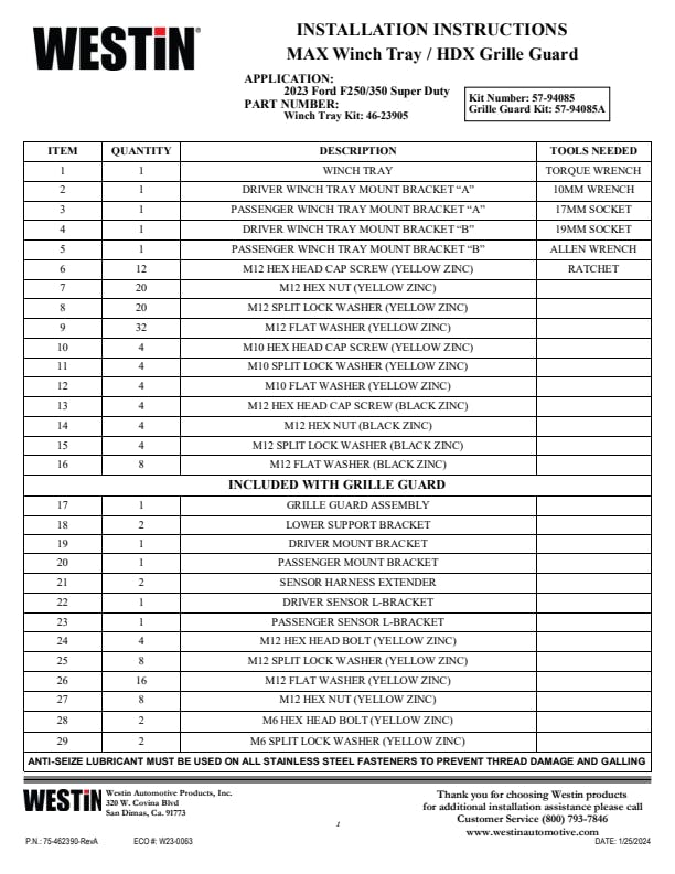 Westin 46-23905 MAX Winch Tray fits 17-24 F250 F350 |
