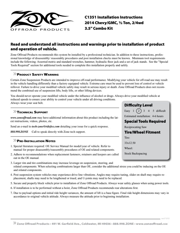 Combo kits offer the best bang for the buck by combining a front leveling kit with a small body lift to offer clearance for larger tires while maintaining factory ride quality and handling characteristics. This 3.5" combo kit for the Silverado/Sierra combines a 2" strut spacers with a 1.5" body lift and bumper brackets to allow clearance for 33" tires.