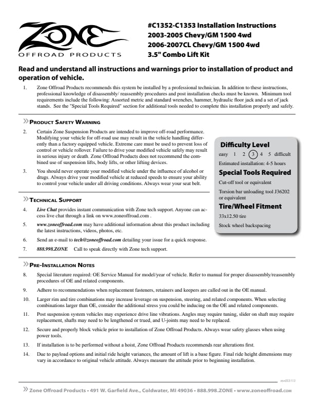 Combo kits offer the best bang for the buck by combining a front leveling kit with a small body lift to offer clearance for larger tires while maintaining factory ride quality and handling characteristics. This 3.5" combo kit for the Silverado/Sierra combines a 2" torsion bar keys with a 1.5" body lift and bumper brackets to allow clearance for 33" tires.