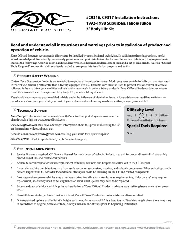 You’ve got a classic SUV, now give it a classic look. This complete 3 Body lift kit is everything you need to raise 1992 - 1994 Chevy/GM 1500 SUV. Detailed instructions make this kit easy-to-install and it’s built to last.