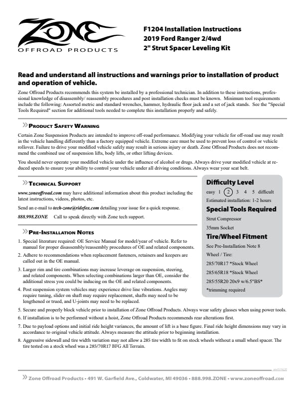 Strut disassembly required to install preload spacers; Will not work with Tremor models.