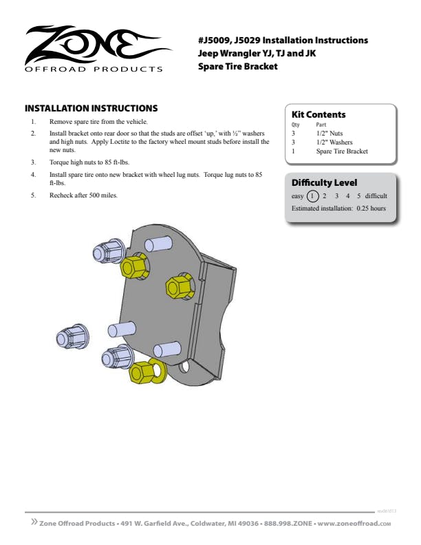 - Repositions factory spare tire mounting location up and out for compatibility with oversized tires
